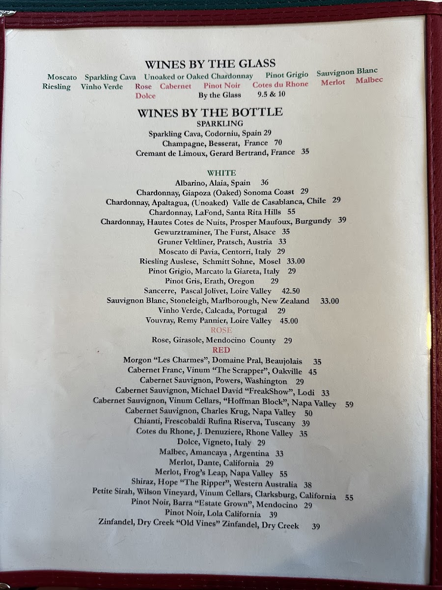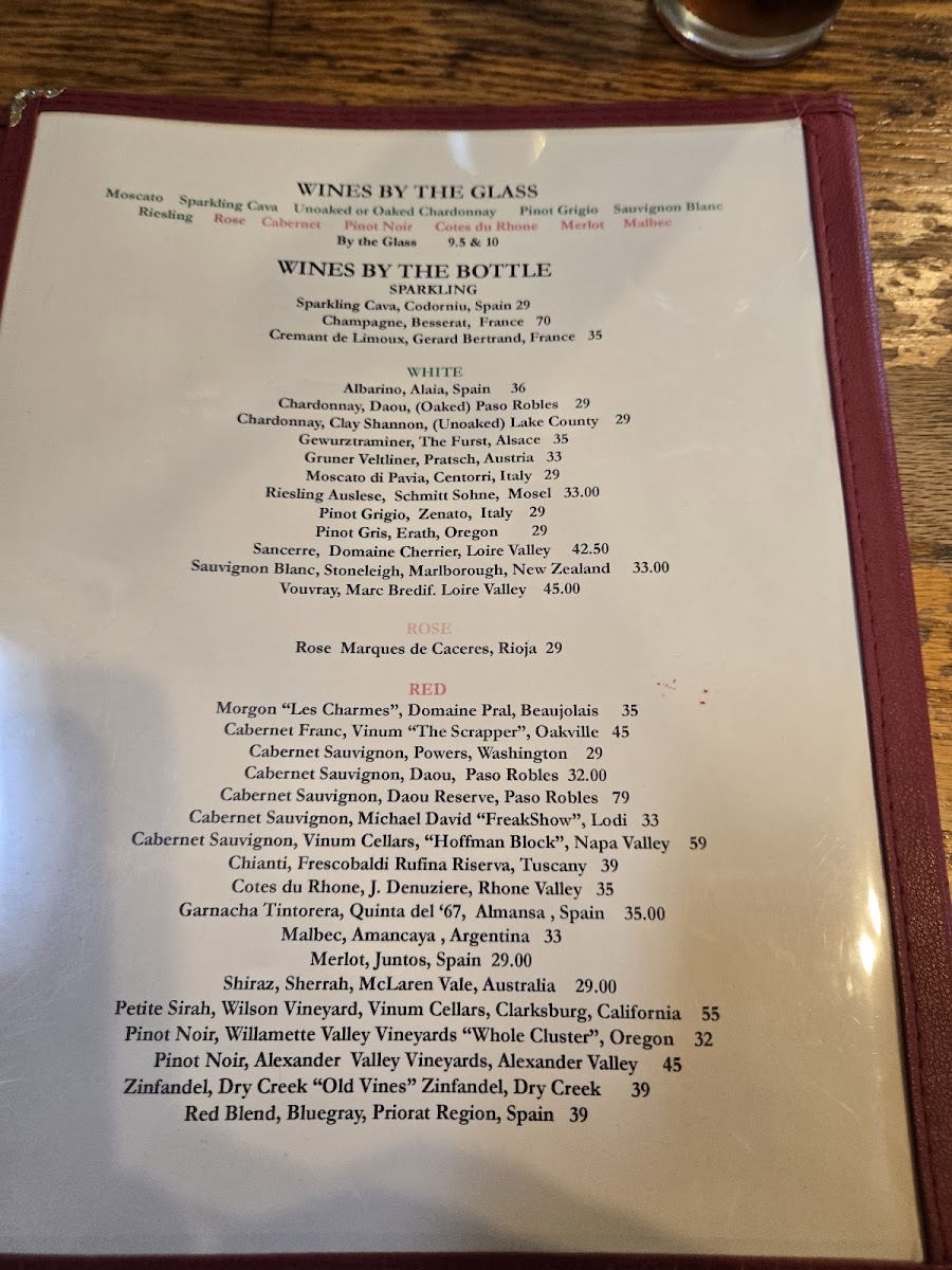 The drink selection complements the food with a well-chosen variety of wines by the bottle, including sparkling options like Cava and Champagne, as well as a diverse range of whites and reds from notable wine regions. These pairings create a cozy and welcoming atmosphere, perfect for enjoying an unhurried meal or catching up with friends.