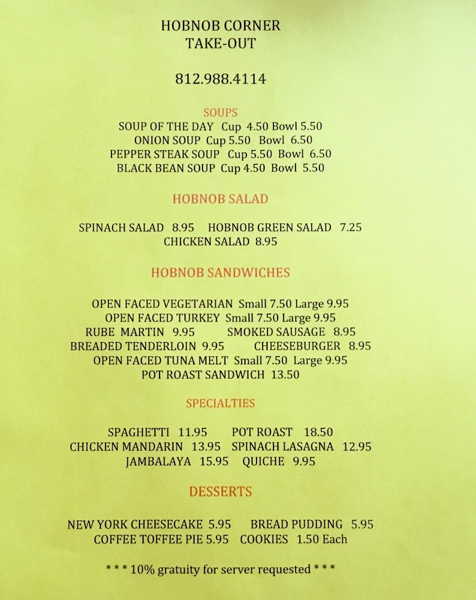 Hobnob Corner Menu
